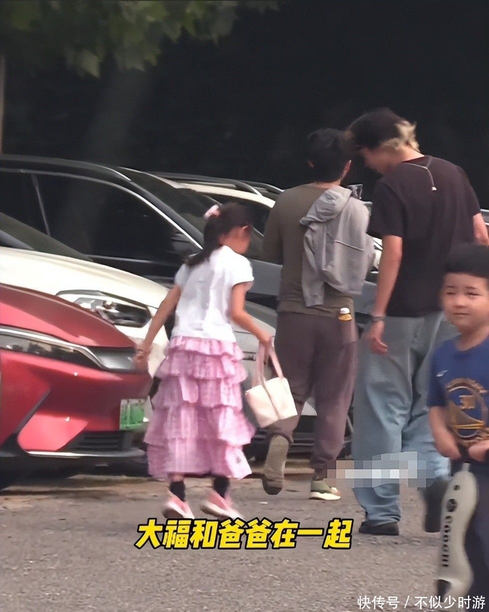 而八岁的女儿大福则蹦跳跟随在后,脸上写满天真喜悦。